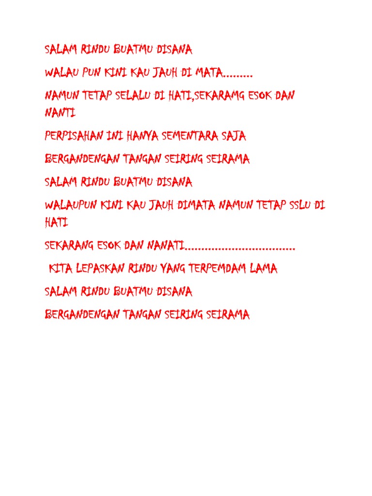 Lirik Lagu Astor Kid Salam Rindu Buat Mu Disana Rindu Terpendam Pdf